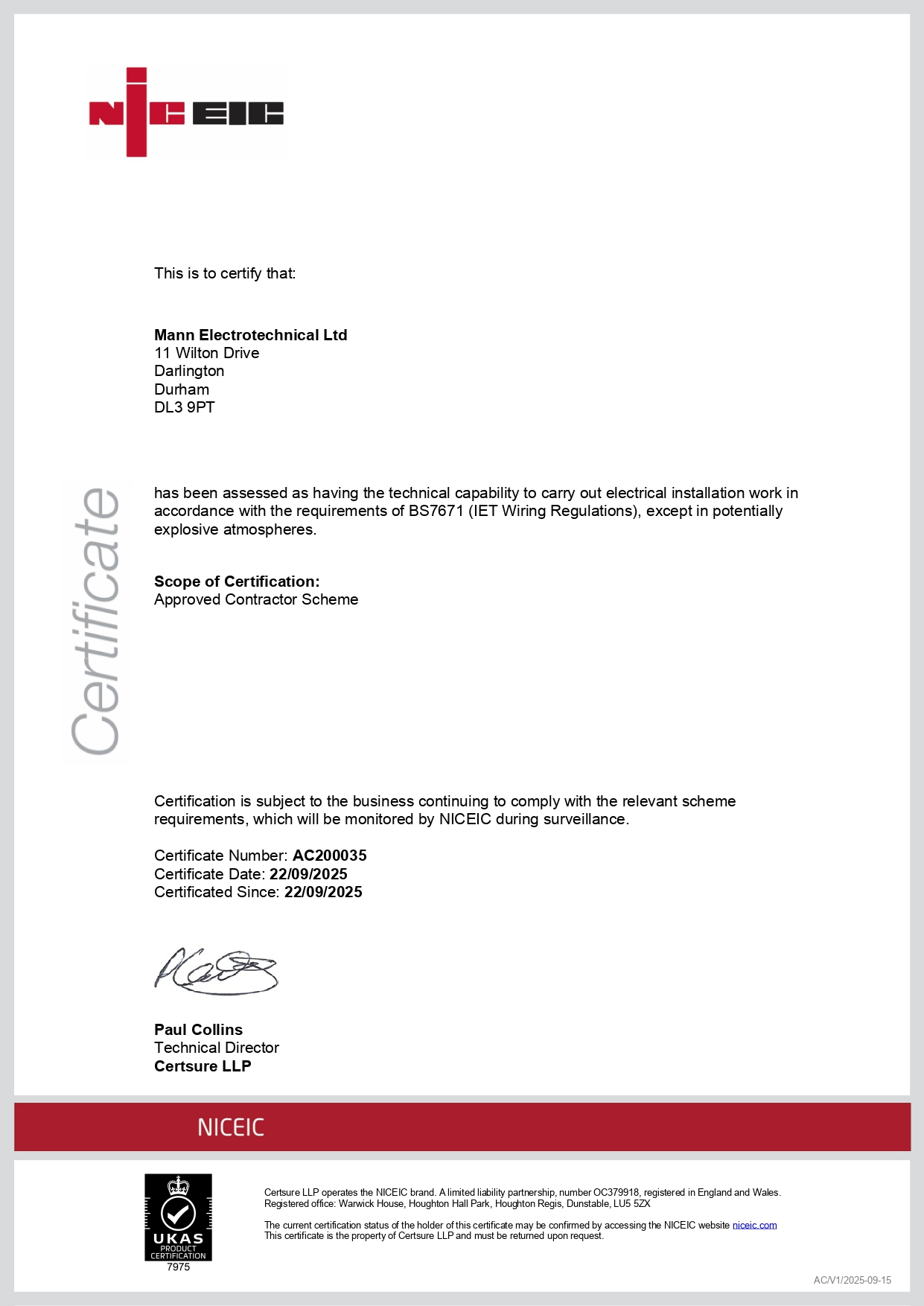 Our inspectors are not just qualified electricians; they hold the specific, higher-level qualifications to inspect. Our company is specifically audited, insured, and approved for this task by the NICEIC.